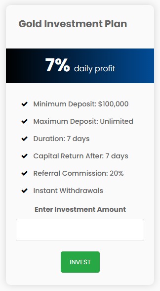 Sectors Include: Forex & Commodities: High-liquidity, short-term trading models, Oil & Gas: Participatory investments in exploration or distribution, Gold Mining: Joint ventures and structured mine development projects, Logistics Infrastructure: Long-term, asset-backed plans with steady cash flow